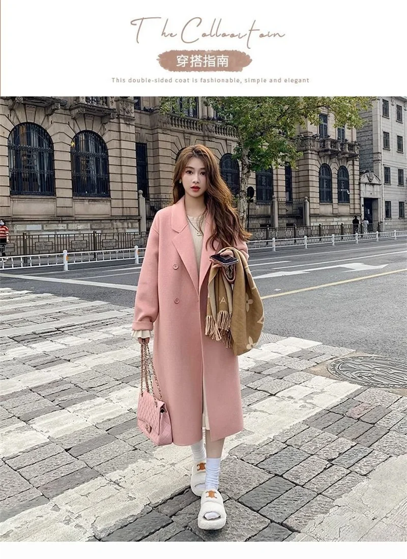 Pink Woolen Coat Women's Mid length 2023 Autumn/Winter New Korean Version Loose and Versatile Hepburn Style Small Woolen Coat
